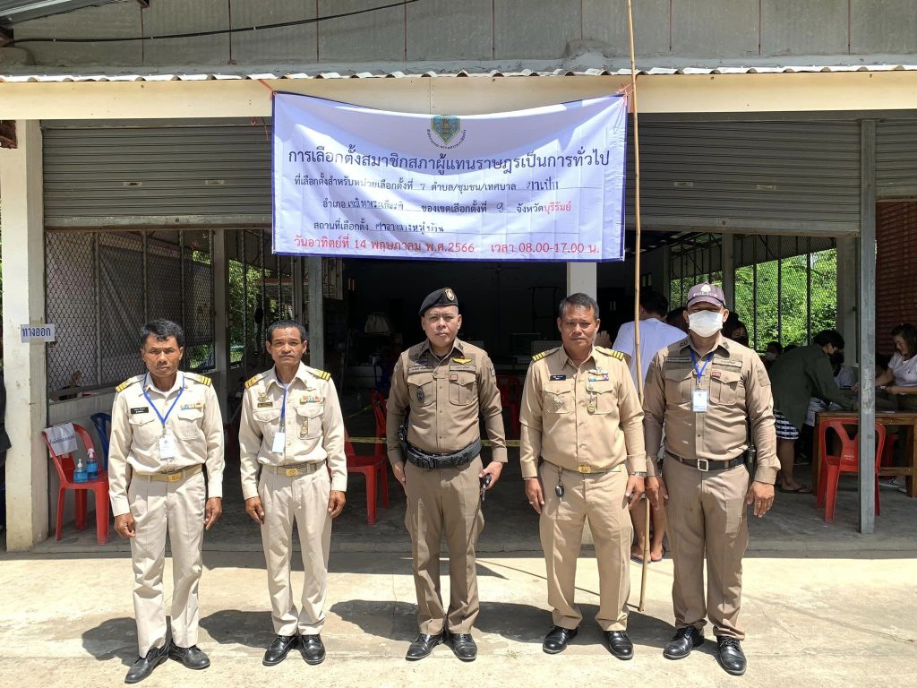 วันที่14 พ.ค. 2566 เวลา 08.30 น. พ.ต.อ.มานิตย์ สร้อยจิตร ผกก.สภ.เฉลิมพระเกียรติ ออกตรวจเยี่ยม หน่วยเลือกตั้ง เขต 8 ต.เจริญสุข และเขต 9 ต.ตาเป๊ก ต.อีสานเขต อ.เฉลิมพระเกียรติ พบประธานประจำหน่วย และ จนท.รปภ. อยู่ปฏิบัติหน้าที่ พร้อมกำชับเจ้าหน้าที่รักษาความปลอดภัยประจำหน่วยเลือกตั้ง ให้ปฏิบัติหน้าที่ดูแลความปลอดภัยอย่างเคร่งครัด รายงานเหตุการณ์ทั่วไปปกติ ไม่มีปัญหาข้อขัดข้องใด