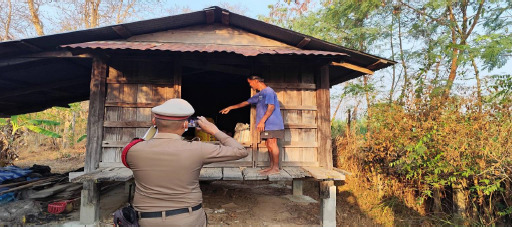 ร.ต.อ.สำรวย อบกลาง รอง สว.(สอบสวน) สภ.เฉลิมพระเกียรติ จว.บุรีรัมย์ พนักงานสอบสวนเวร ได้ออกตรวจที่เกิดเหตุคดีลักทรัพย์ข้าวเปลือก
