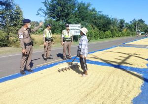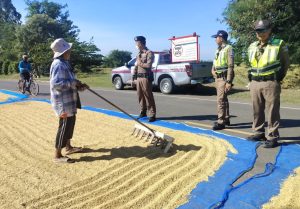 เมื่อวันที่ 12 พฤศจิกายน 2567 เวลา 09.30 น. ชุดปฏิบัติการจราจรได้ ได้ประชาสัมพันธ์ ให้ความรู้และแนะนำประชาชน เกี่ยวกับการนำข้าวที่เก็บเกี่ยวมาตากบนท้องถนน โดยให้วางกรวยให้เป็นจุดสังเกตุของผู้ใช้รถใช้ถนน และให้คืนผิวจราจรในช่วงเวลากลางคืน พร้อมเก็บกวาดให้เรียบร้อยเมื่อตากเสร็จ