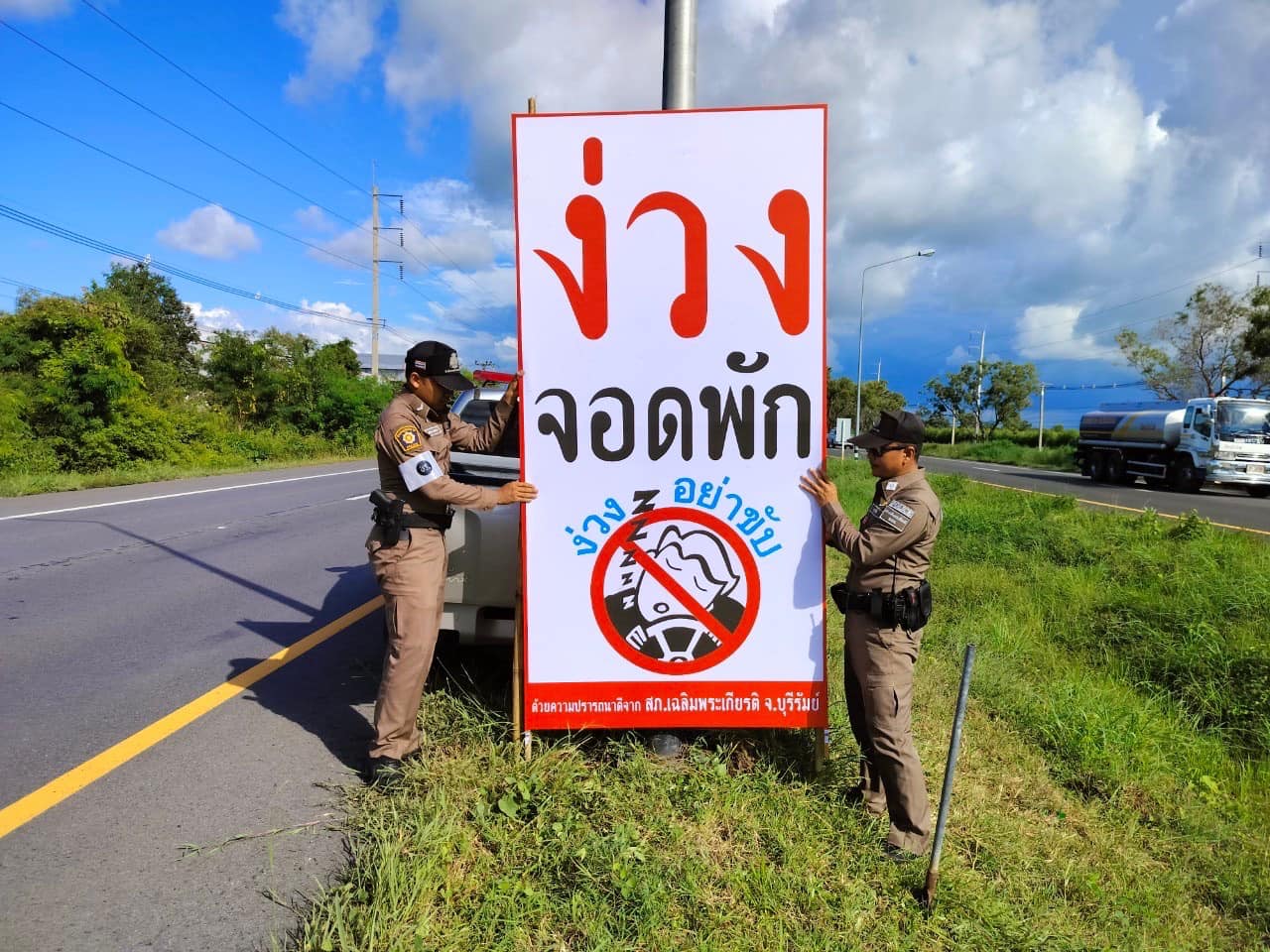 สถานที่เกิดเหตุ ถนนสาย 24 (โชคชัย-เดชอุดม ฝั่งมุ่งหน้าไปทางอำเภอประโคนชัย) ระหว่าง กมที่ 133-134 ต.อีสานเขต อ.เฉลิมพระเกียรติ โดยการติดป้ายตั้งประชาสัมพันธ์เตือนผู้ขับขี่ให้เกิดความตระหนักรับรู้ ตามมาตรการรณรงค์ประชาสัมพันธ์เพื่อป้องกันอุบัติเหตุทางถนน