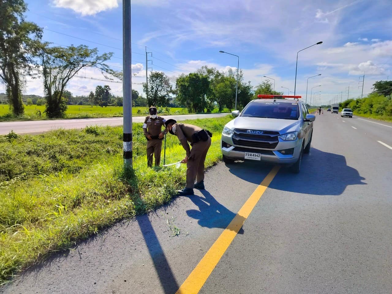 มอบหมายให้ ร.ต.ต.สุริยา ทับทิมไสย ร้อยเวร 60 พร้อมทีมงาน ดำเนินการแก้ไขและป้องกันอุบัติเหตุทางถนน กรณีรถกระบะหลับในชนรถจักรยานเสียชีวิต 2 ราย เมื่อวันที่6ต.ค.66 เวลาประมาณ 05.30 น.